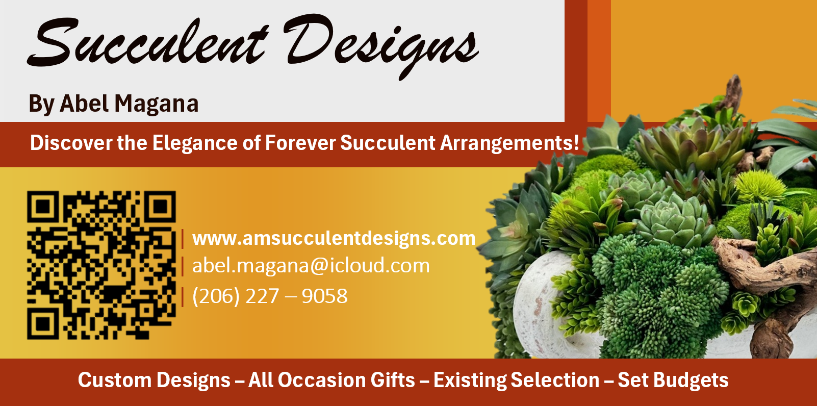 Succulent Design in Black Metal Vase with Candles | One-of-a-Kind Succulents Floral Arrangements | Centerpiece and Gardening Gift